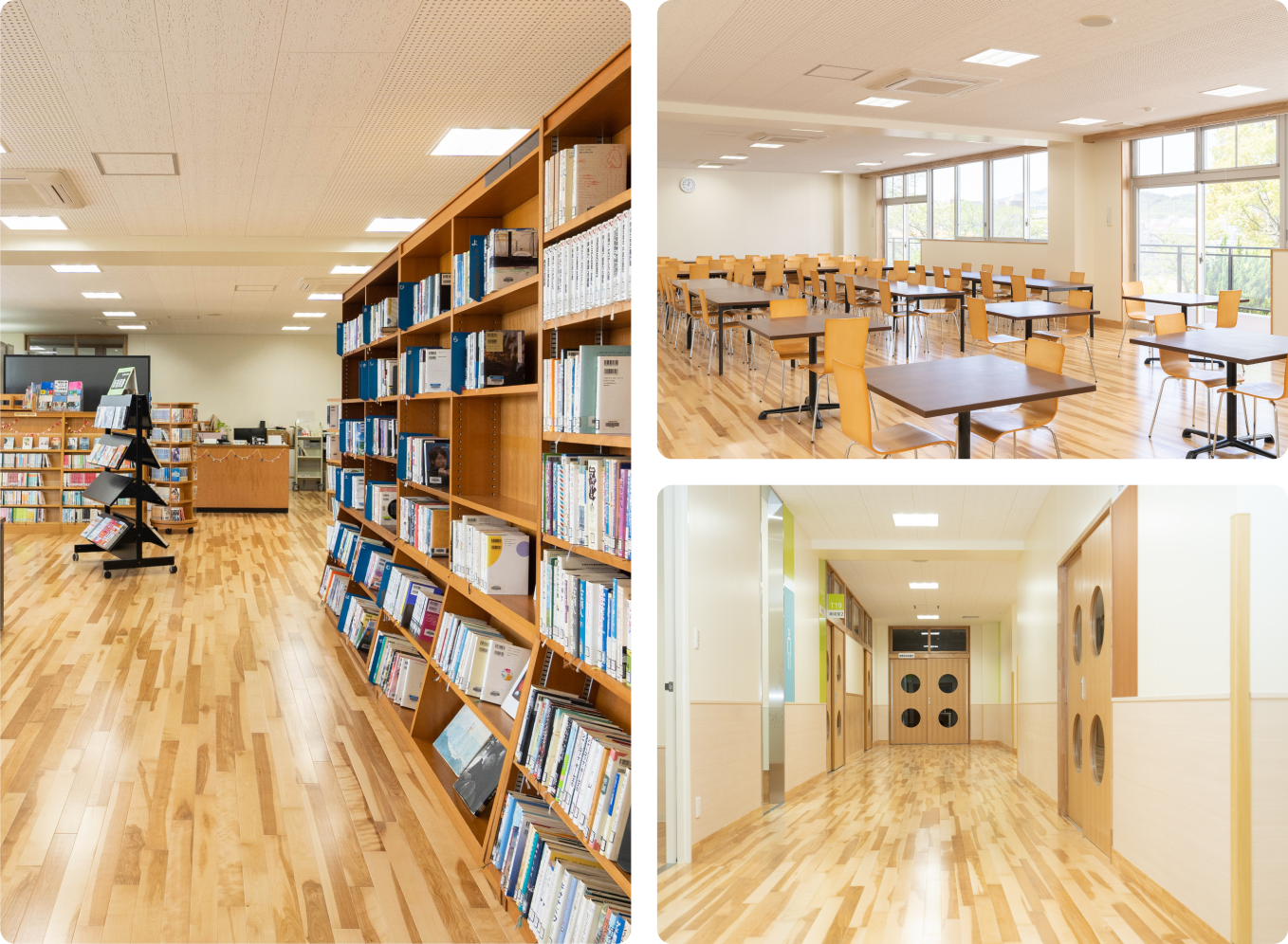 充実の蔵書数を誇る図書室は、静かで落ち着いた学びの空間。調べ物や読書に没頭するのに最適!知的好奇心を刺激する、あなただけの特別な場所を見つけよう。