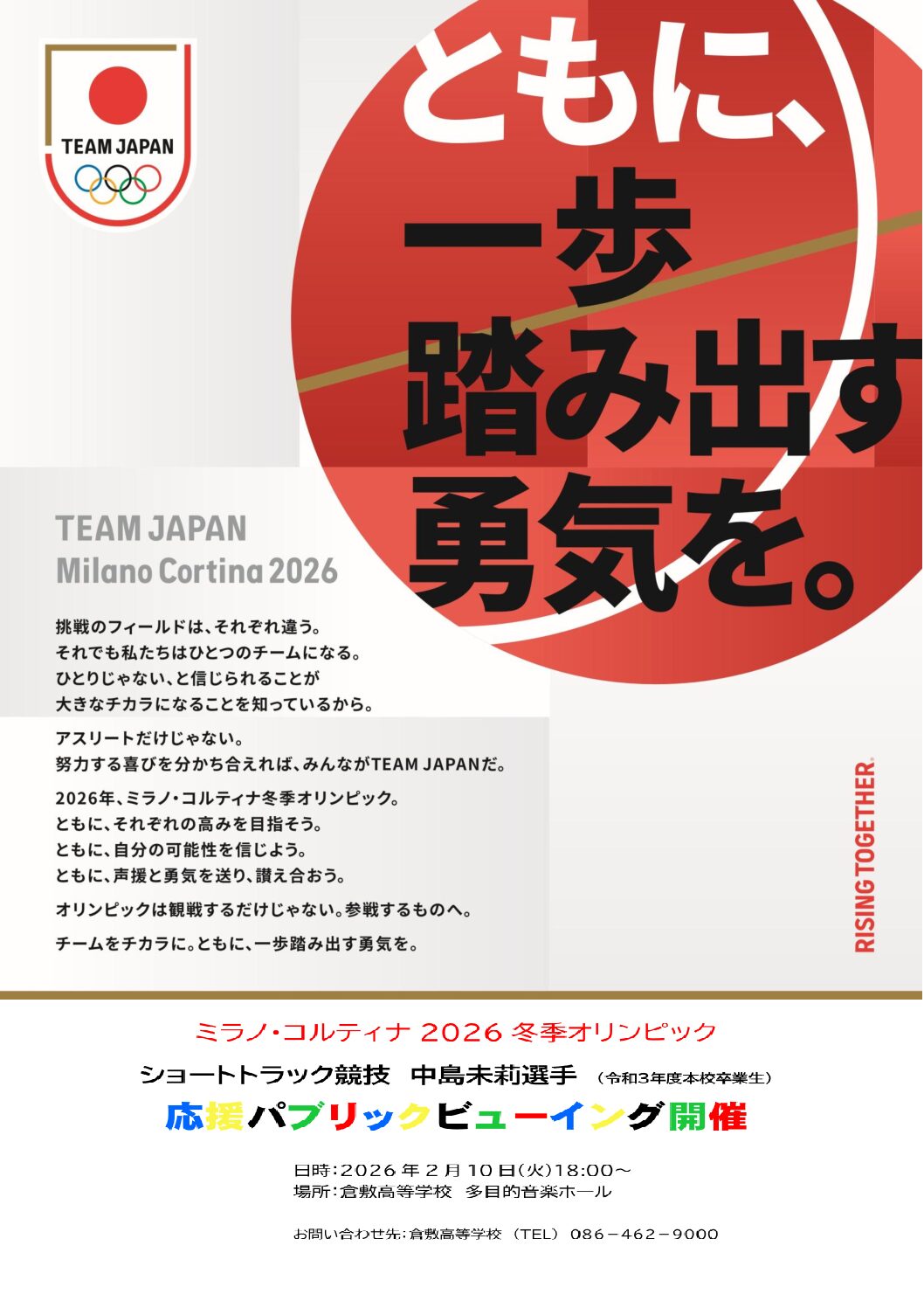 【お知らせ】パブリックビューイング開催について(中島未莉選手)