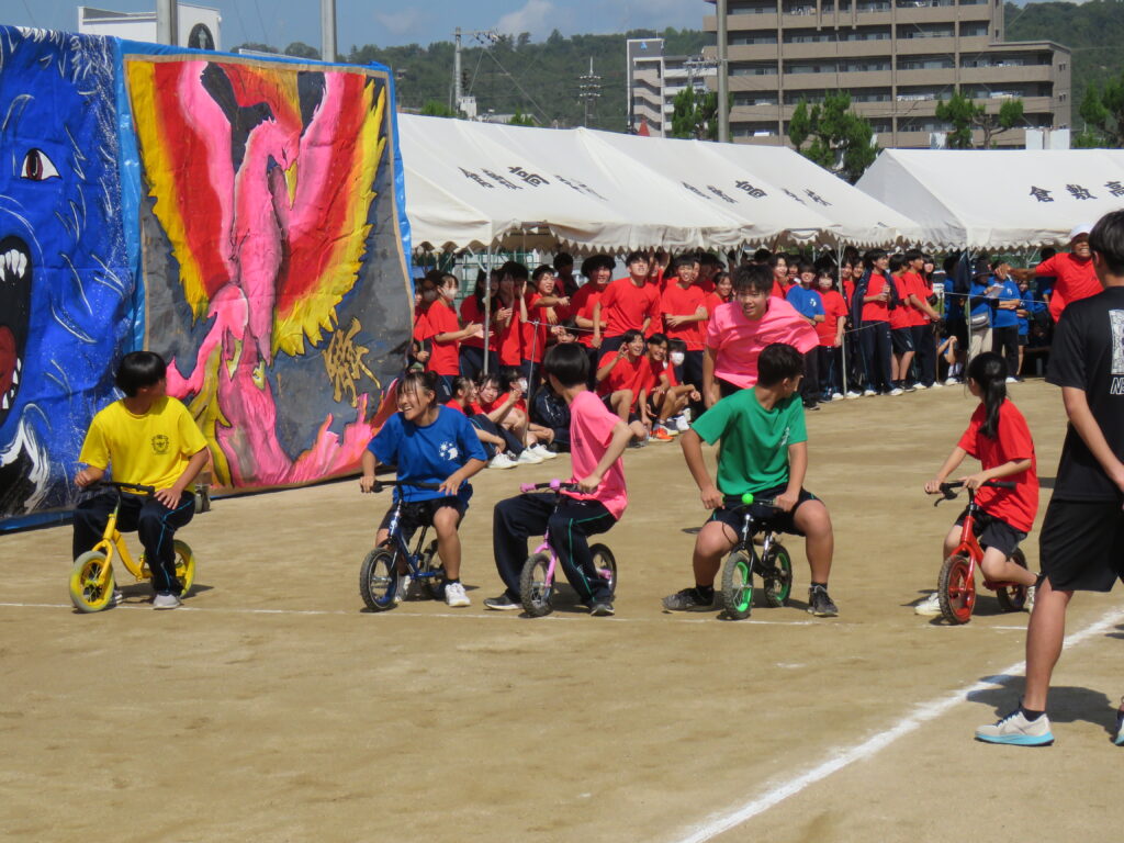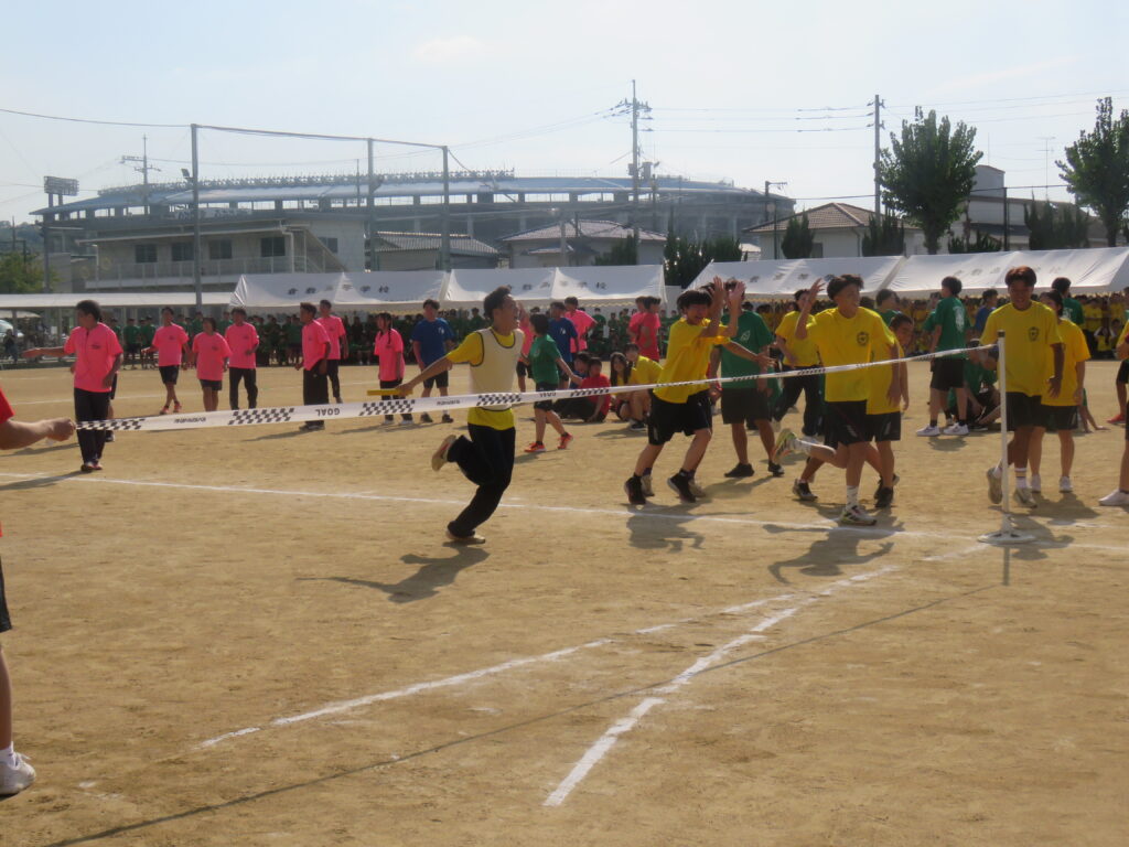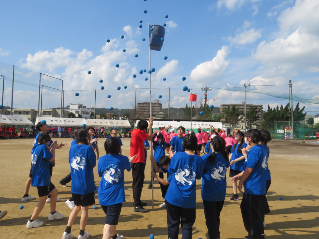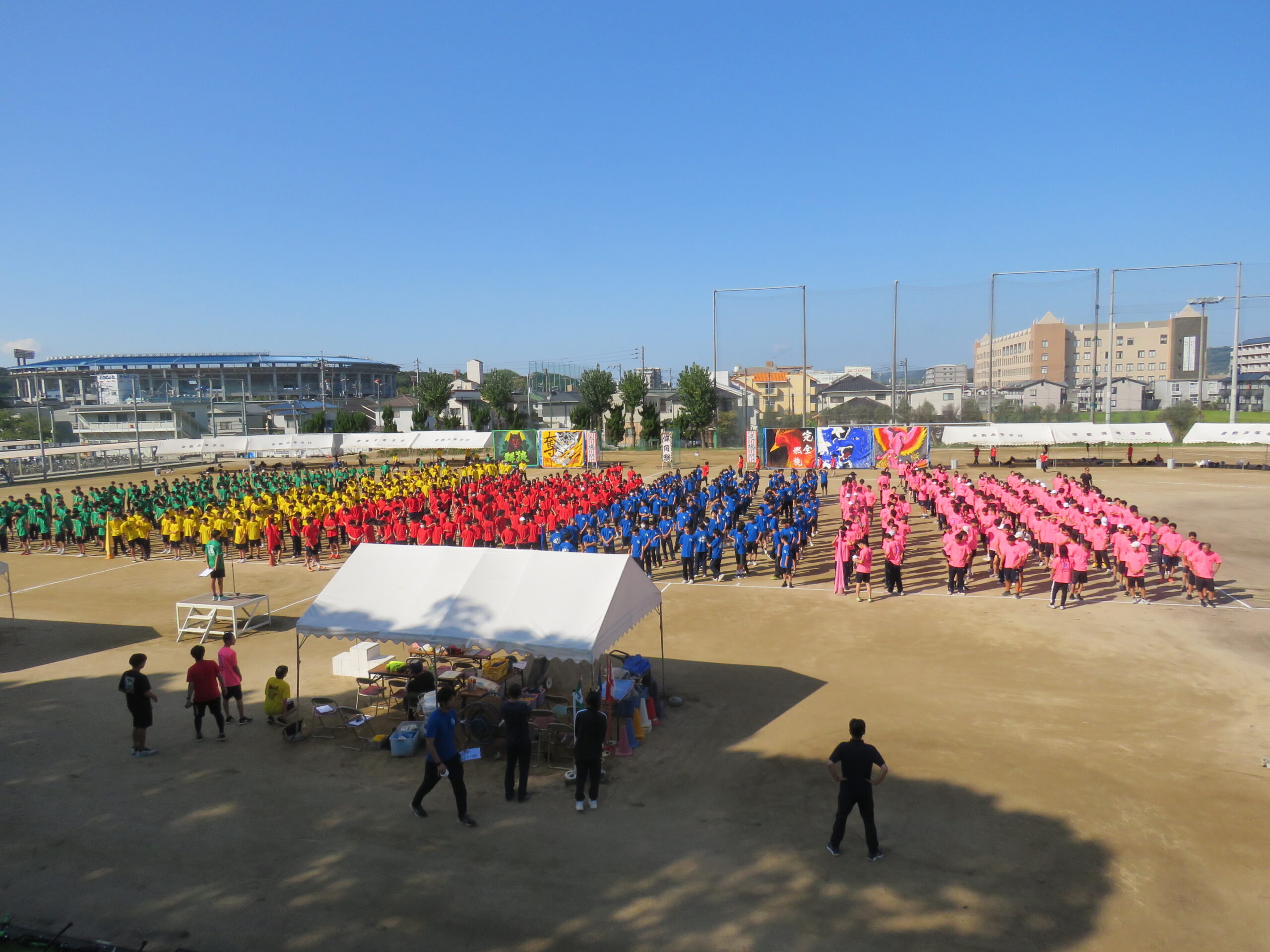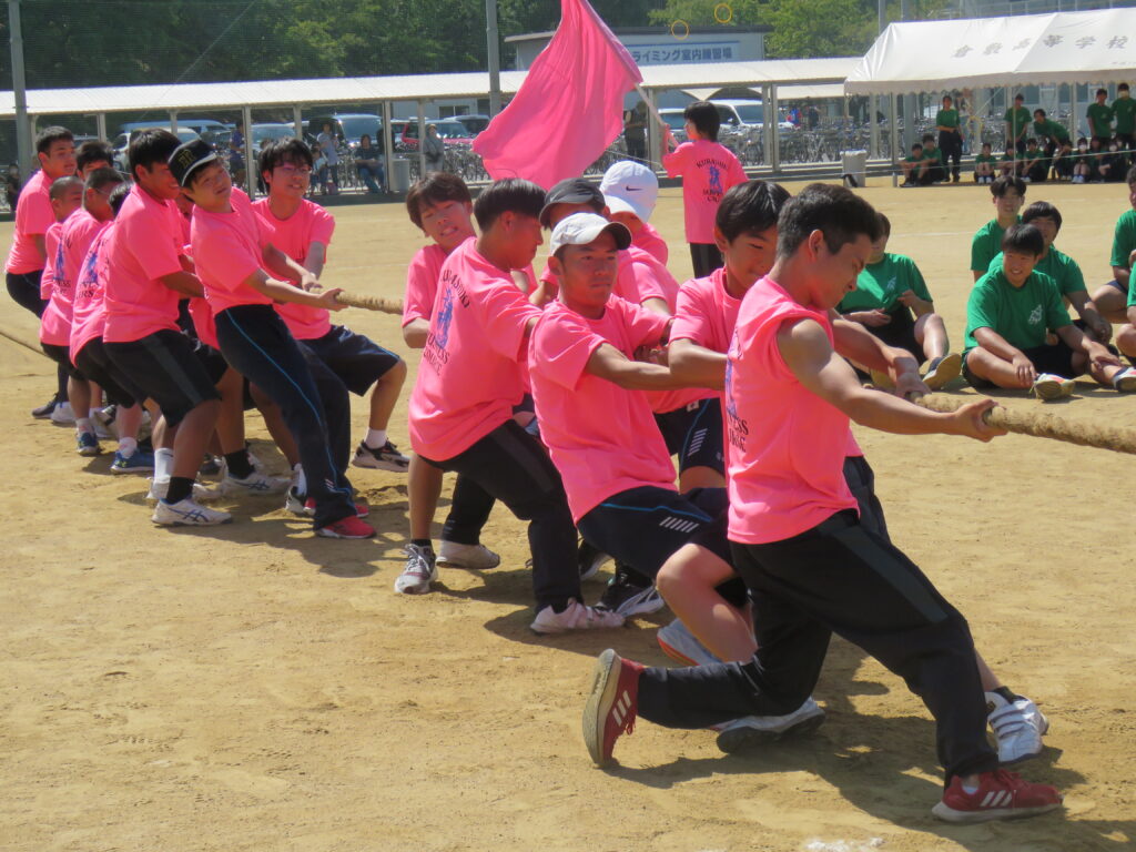 10月1日(水)、秋晴れのなか、体育祭が行われました。9月26日(金)に予定されていたのが雨天順延で9月30日(火)の順延日も前日からも大雨でグラウンドコンディションが悪化しました。このまま今年度の体育祭の実施も危ぶまれる中、生徒たちの体育祭の実施したいという熱い思いから、グラウンドコンディションを整えるなど、無事今日の日に体育祭の実施が実現しました。倉敷高校は生徒の「自分たちでつくる」という意識を高める学校行事になるよう生徒主体の工夫が行われます。生徒会や体育祭実行委員会が中心となり、行事のテーマ設定から内容の検討、準備、当日の運営、後片付けまでを担い、協力して行事を作り上げることで、集団への所属感や連帯感を深め、自主性やリーダーシップを育むことができます。玉入れ、パワーバトル(綱引き)、障害物競走、長縄跳び、背中渡りリレー、ブロック対抗リレー、部活動対抗リレー等白熱した競技が繰り広げられました。