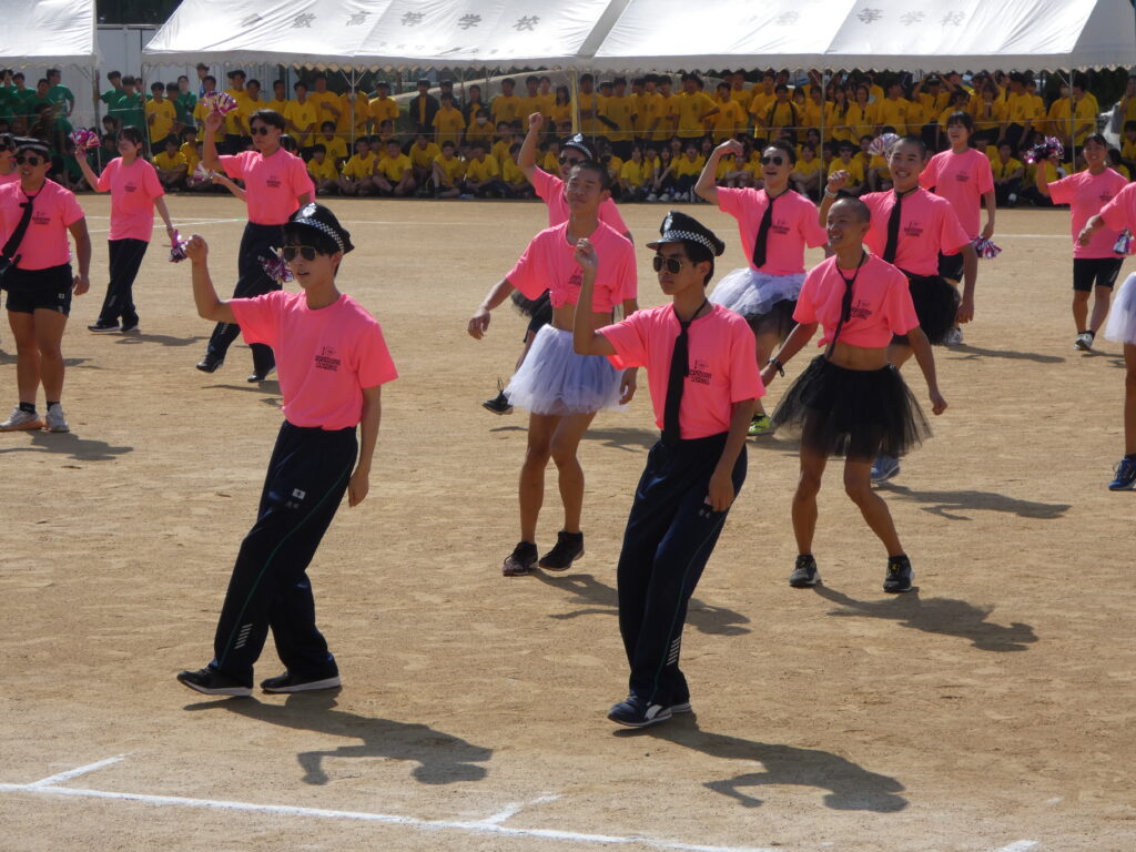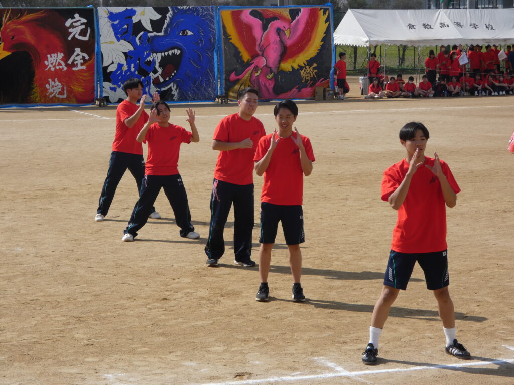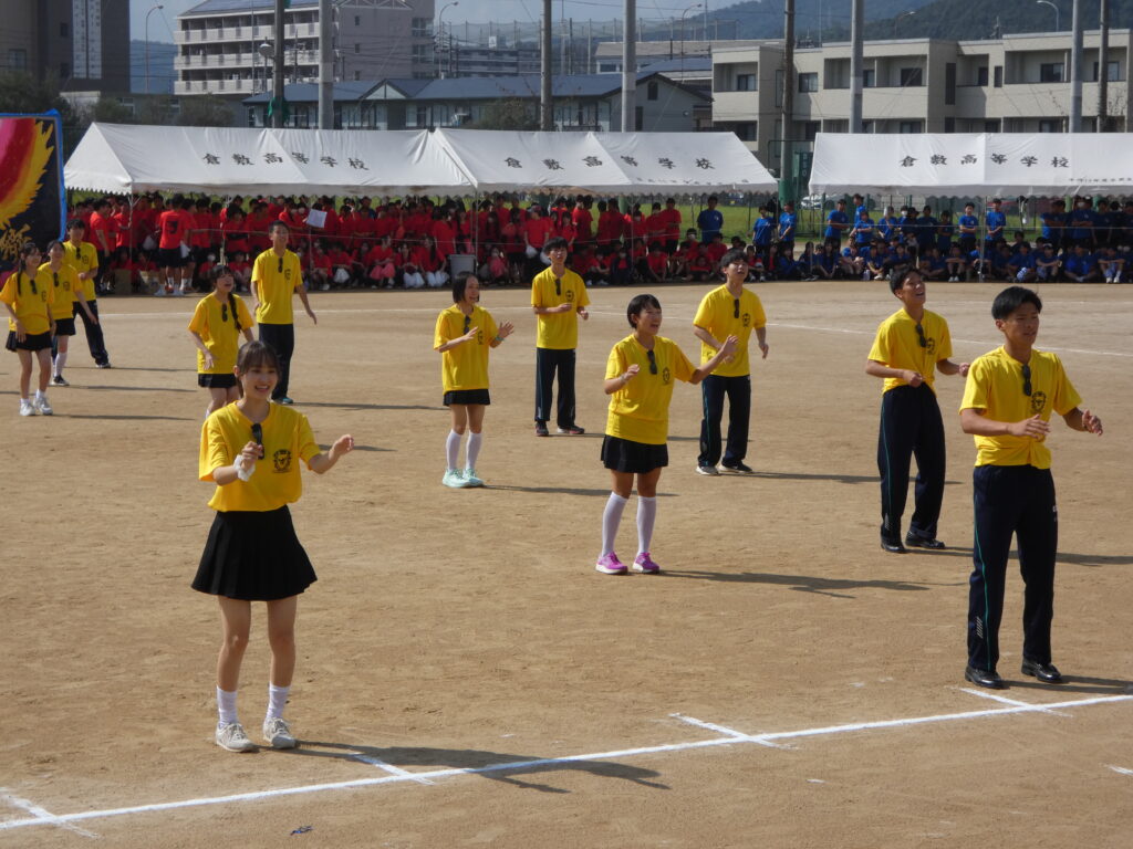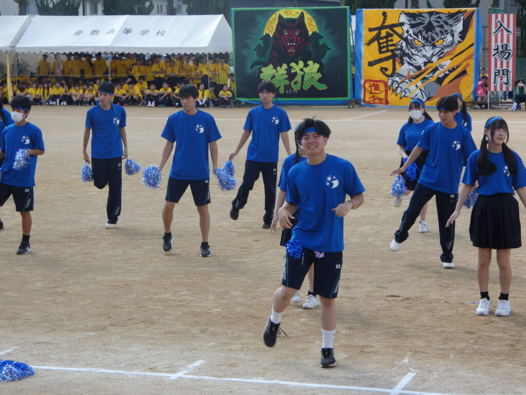 倉敷高校の体育祭は桃・青・赤・黄・緑の五つのブロックに分かれて競技が行われます。プログラムのなかでも圧巻なのは3年生によるブロックパフォーマンスは見どころたくさんです。ブロックごとに趣向を凝らした演技が迫力満点です。ブロックごとの応援看板は体育祭を演出するのに最高の脇役となります。3年生にとって高校生活最後の体育祭です。良い思い出になったとともに、成長した姿を垣間見ることができました。最後になりましたが、平日のご多用のなか、体育祭観覧にお越しいただきました、保護者ご家族の皆様ありがとうございました。