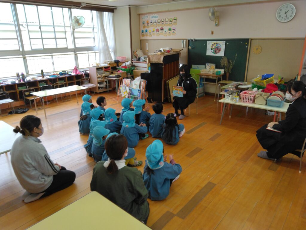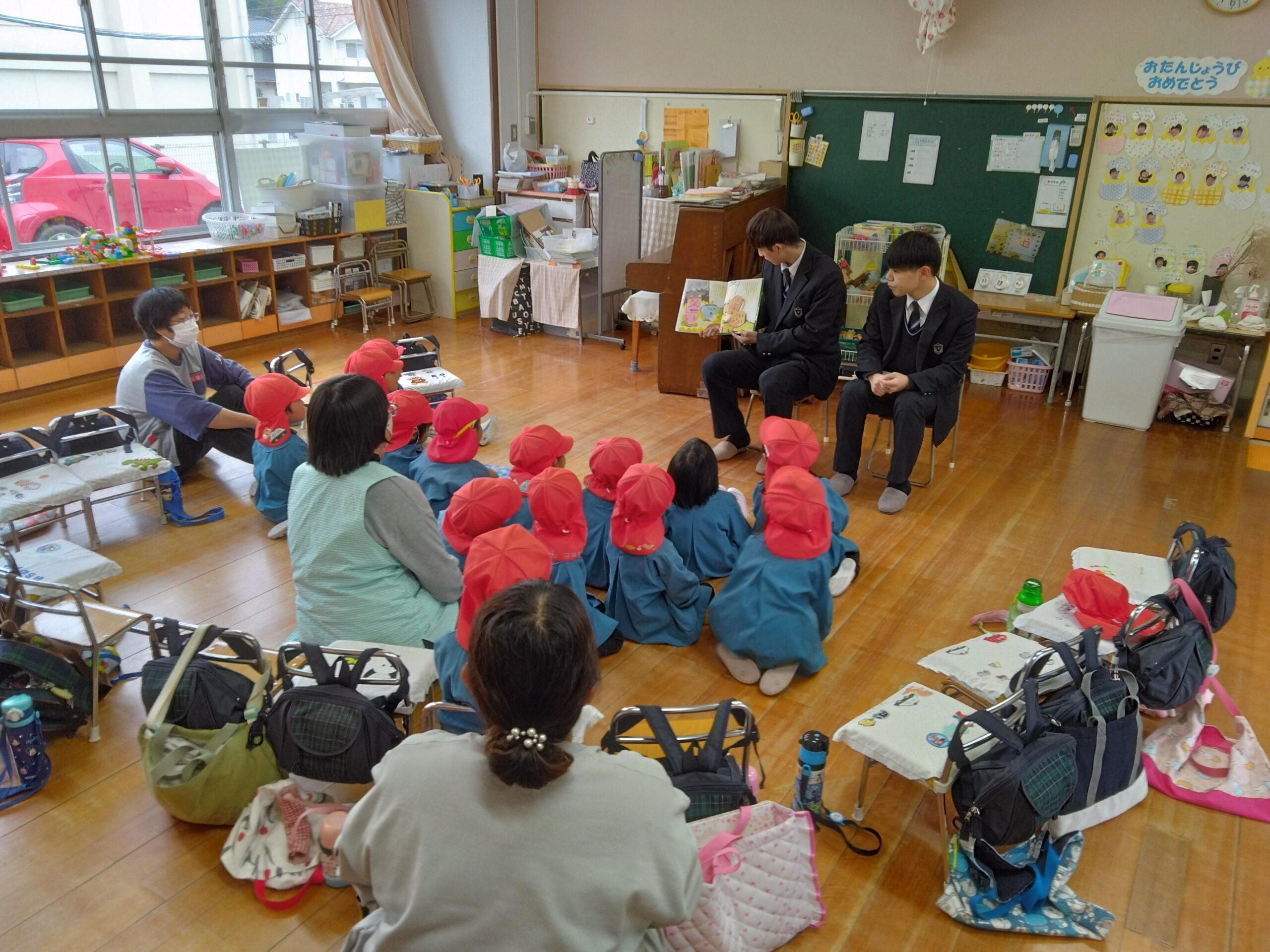 11月13日(木)に普通科総合探究コース・保育・福祉領域の3年生の生徒が倉敷市立中庄幼稚園の読み聞かせボランティア活動を行いました。生徒は優しくゆっくり丁寧な語り口調で、園児たちを物語の世界へうまく引き込むことができたようです。読み聞かせを通じて子供との触れ合いの時間が信頼関係の構築につながりました。倉敷高校では職業観を育むための実学的な取り組みとして、実習を多く取り入れたカリキュラムとなっています。