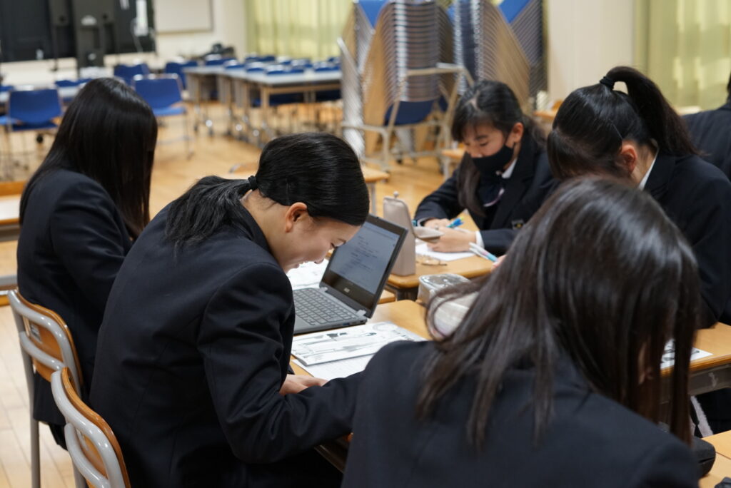 本校では最新機器を備えた情報教室や各教室でChromebookを活用したオンライン授業やGoogleドキュメントなど、インターネット経由で「いつでも・どこでも」実践的に学べる環境で、情報社会で「賢く、正しく、安全に」生きる力を育むことも実践しています。