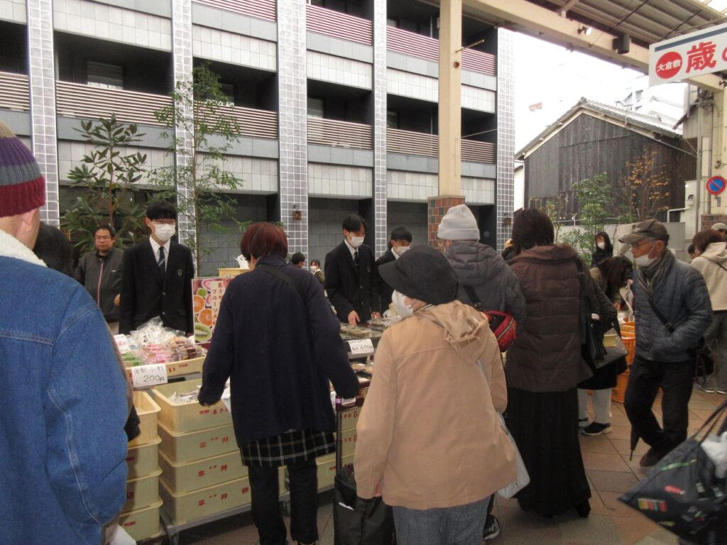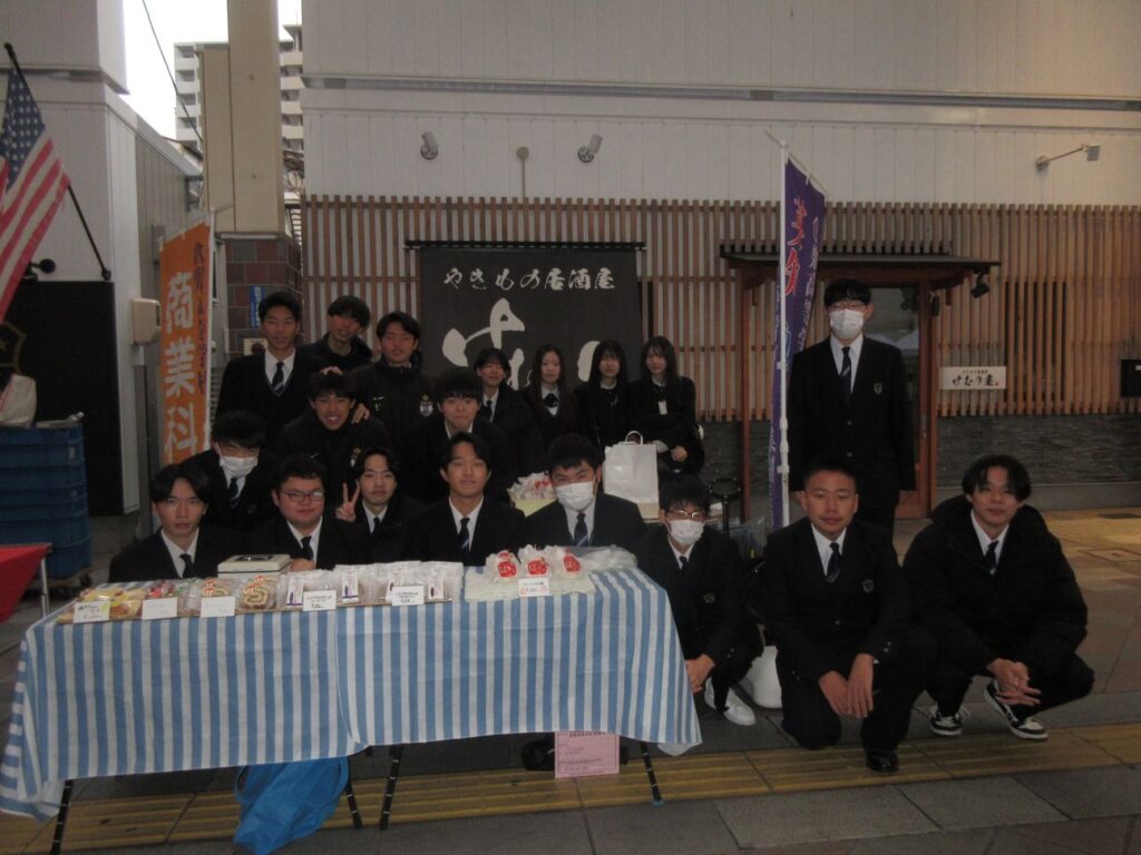 12月21日(日)に倉敷駅前商店街で行われた、高梁川流域倉敷三斎市に商業科の生徒が出店し、「花みづき」さんとのコラボ商品と、笠岡の老舗和洋菓子店「玉利軒」さんの商品を販売をしました。