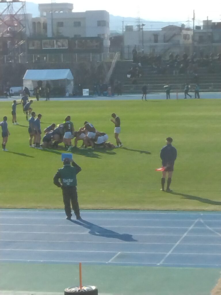 12月28日(日)、東大阪市花園ラグビー場で行われた第105回全国高校ラグビーフットボール大会1回戦で強豪高知県代表の土佐塾高校と対戦31-0で初戦を突破しました。開始早々自陣に攻め込まれあわやトライを奪われかけるもバックス、フォワード一体となり強固なディフェンスでトライを阻止することができました。あとは倉敷のリズムも徐々に上昇し連続してトライを決めることができました。ここ一番の倉敷パワーとチーム力がバランスよく発揮できたゲームでした。