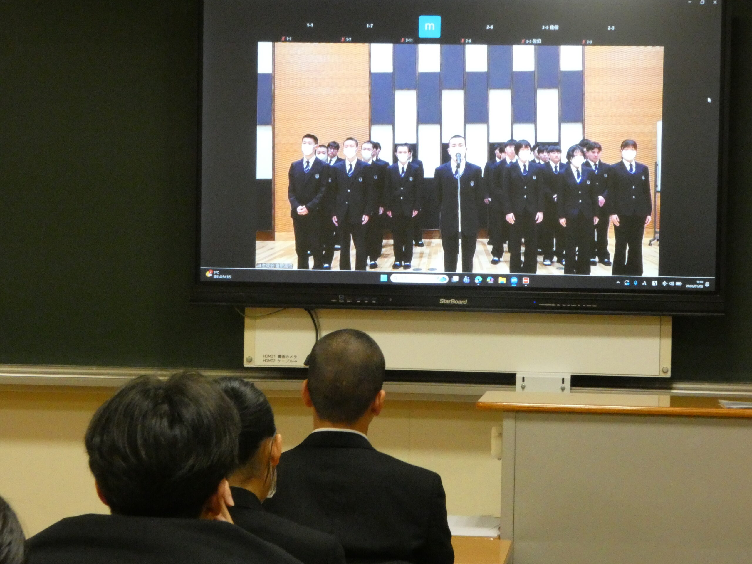 1月8日(木)令和7年度第3学期始業式を行いました。本日はホームルーム教室でオンライン配信による式となりました。始業式では、学校長式辞、生徒会長挨拶、生徒指導部および保健委員会からの連絡の後、全国大会結果報告、表彰伝達がありました。