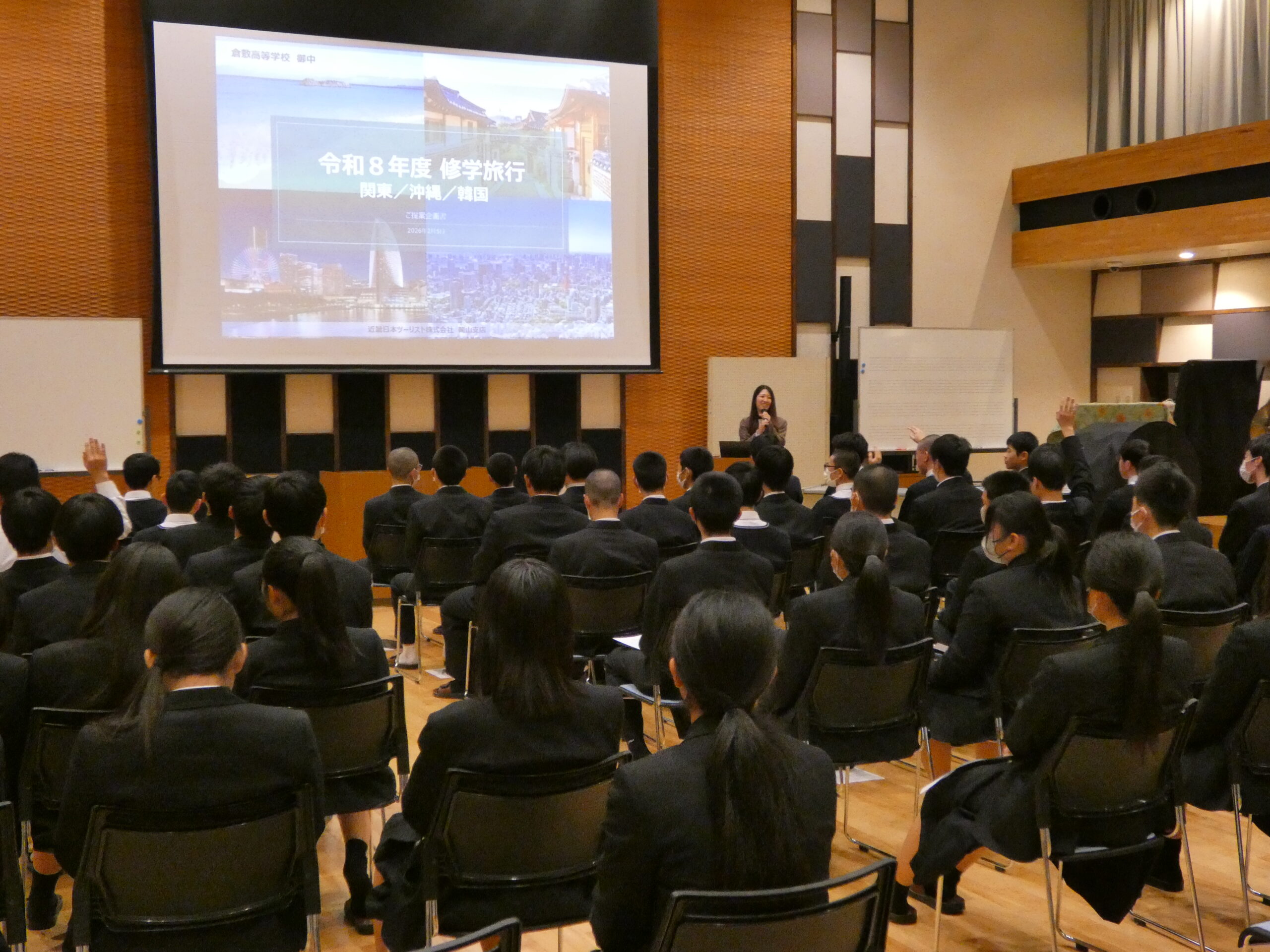 2月5日(木)商業科1年生で、来年度の研修旅行に向けた準備の一環として、旅行業者によるプレゼンテーションを実施いたしました。商業科独自の取り組みとして、観光ビジネス体験と連動し、生徒が自分たちで研修旅行プランを作成します。今日は生徒が立てたプランと同条件で旅行会社からもプレゼンテーションを行なってもらいました。