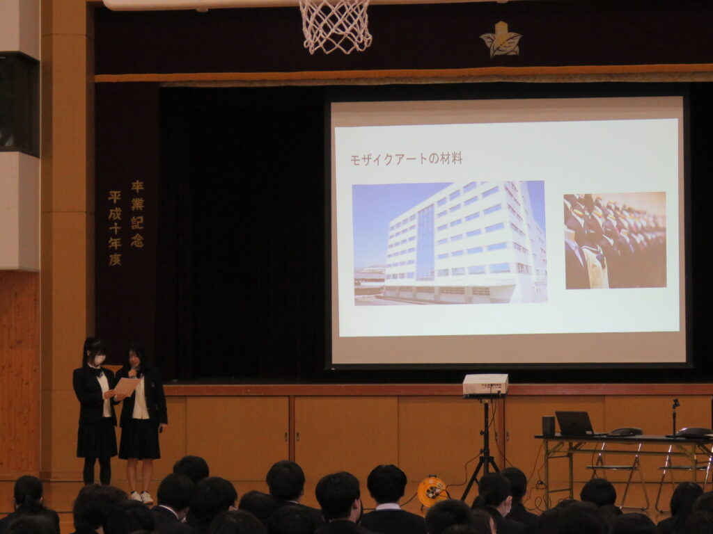 ※記事の先頭の画像は普通科・進学チャレンジコースの生徒が実際に作成した本校の校章のモザイクアートです。
